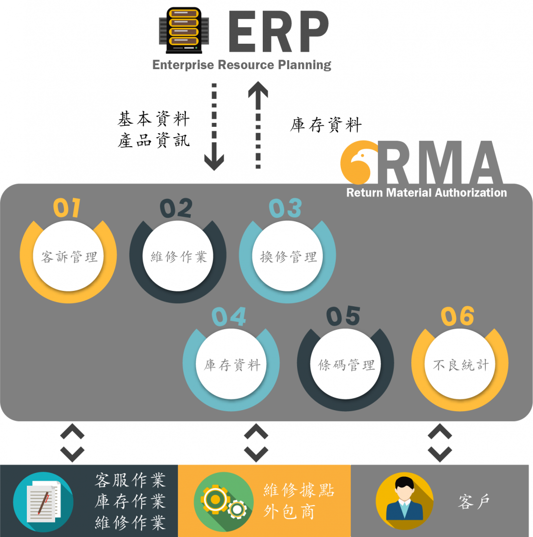 - 跨國RMA系統整合,節省建置維護成本、集團資訊即時整。